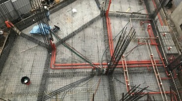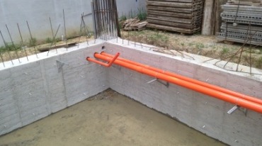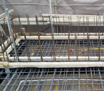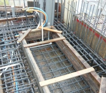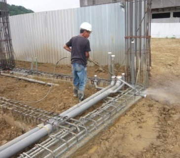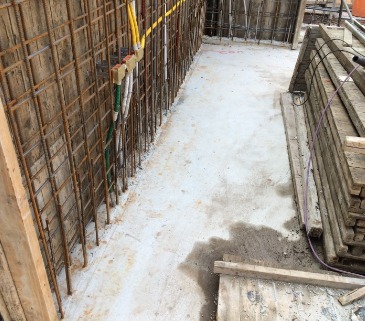 牆面模板組立後,鋼筋綁紮,水電配管.要在封模前,全面清潔,使在混凝土澆置過程中黏著性較好。