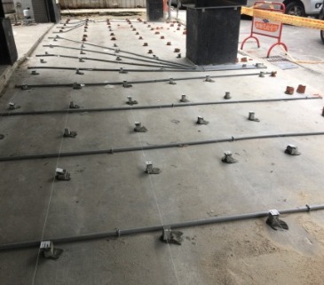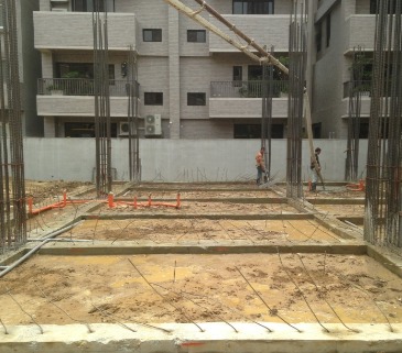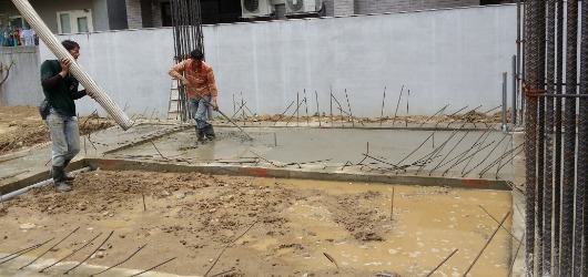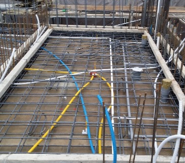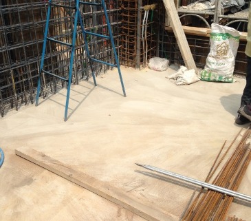 基礎回填土後,預留約5公分的厚度,在施做一次PC,避免在施做1樓樓板鋼筋綁紮時,因師傅在鋼筋上面作業導致鋼筋與土接觸,導致鋼筋生鏽。