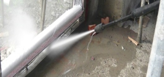 9.內外牆高壓水柱沖洗: