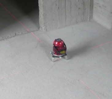 內外部粉刷線開設,十字基準線,外部垂直線,增加泥作準確度。