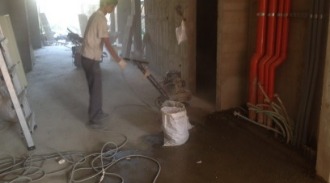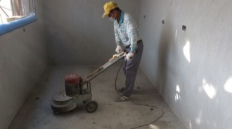 第一施作時間點:水泥,砂進場前,全面性地坪打磨一次,將地坪清潔乾淨。