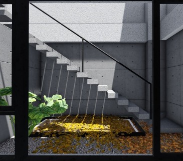 原設計是簡單的室外鋼構樓梯,由於業主喜歡清水模風格,討論後繪圖供業主確認並提供變更估價單,確認完畢後施作。