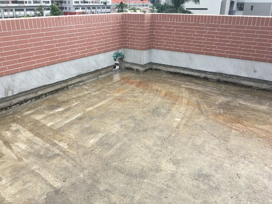 露台,是下雨直接接觸的面積,所以我們在露台防水施作的方式也是更加謹慎,避免產生滲水現象,不僅我們在結構體灌漿實施做整體粉光,將表面壓實,並且牆角施作泛水工法,再施作防水層時,也比陽台多了三道手續,希望能達到100%的防水效果。