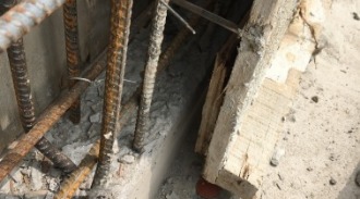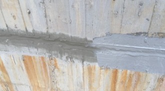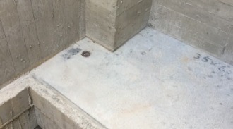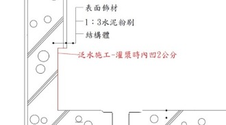 灌漿時使用夾板或是保麗龍,使灌漿完成後於結構體下方內凹2公分,使日後滲水於內凹處滴水,避免水流入防水層接縫處失去防水效果。