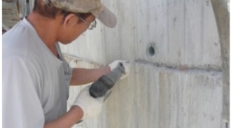 將螺桿折斷並敲平至結構體齊,益膠泥塗布。