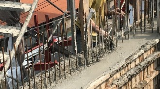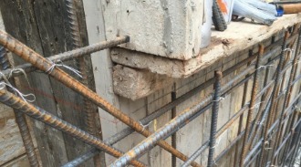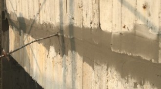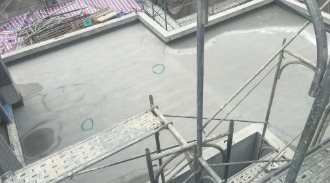 外牆外斜灌漿,達到樓與樓冷縫形成斜坡達到防水效果,外牆加厚3公分,設計15公分變18公分。