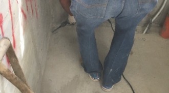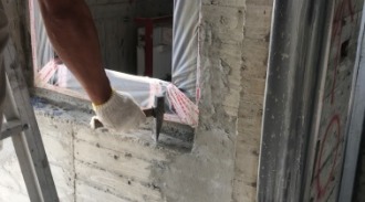 打溝清除:功用在於灌漿後,外斜位置會有些許木削等較為小髒污殘留,利用打溝清除掉後,再施作防水。