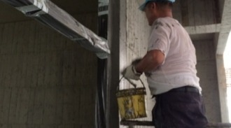 施工順序:清潔→益膠泥補洞(先施作牆角)→底漆施作(先施作牆角)→彈性水泥(先施作牆角)→不織布黏貼(先施作牆角)→彈性水泥(先施作牆角)→帶風乾後再施作一次彈性水泥(先施作牆角)→泥作牆面施作完畢後再重複一次施作地坪