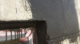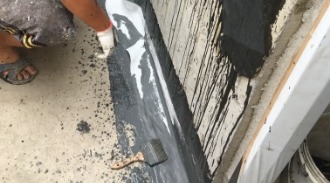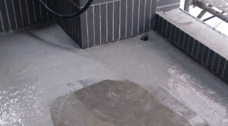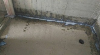 施工前的清潔為防水成敗重要一環,所以在施作防水前,必須先將施工範圍清理乾淨,再開始施作防水。底塗施作很重要亦不可忽略。2.落水頭位置及高度需先做確認,落水頭防水要先使用砂輪機將管磨至低於樓版面並施作內凹至管內,且需施作2層不織布。