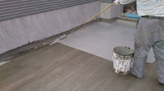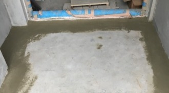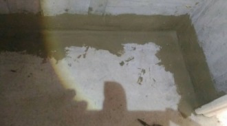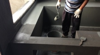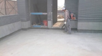 待泥作牆面及磁磚貼做完畢後,防水地坪鋪面施作。