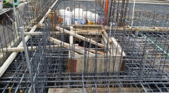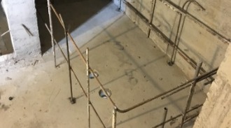 結構體施工,地坪高低差或止水墩一體灌漿處理。