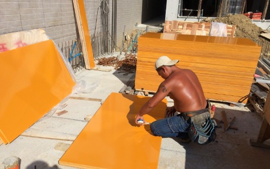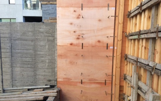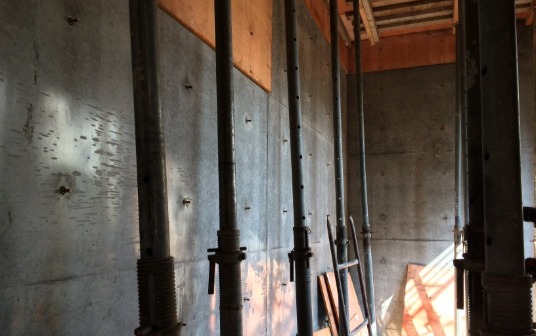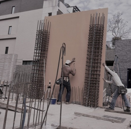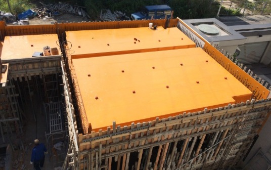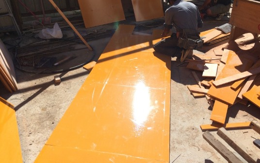 1.清水模板材料選擇:日本黃板-優力膠板 原因:施工後完成面較光亮