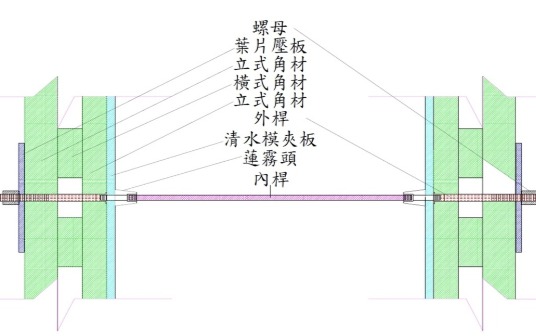2.模板蓮霧頭選擇:直徑4公分跟直徑2公分,選用原因:因本建案量體及考慮模板強度不需要使用4公分的蓮霧頭,固選用小的蓮霧頭,外觀上較為秀氣美觀。