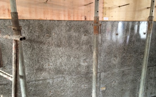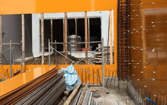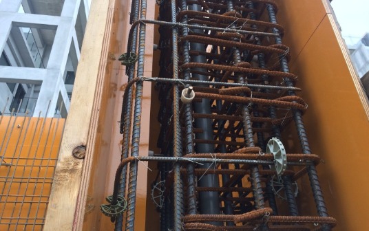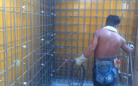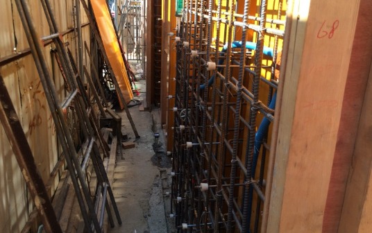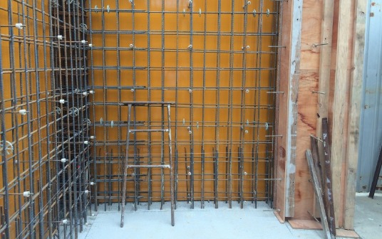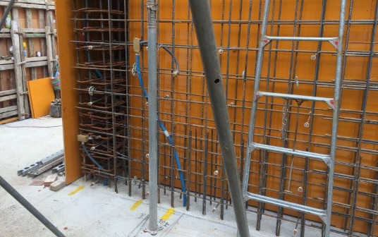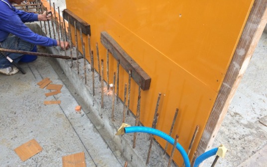 4.在使用震動機機將震動棒插入牆體搗實時需確實插入雙層鋼筋中間,避免震動棒接觸清水模板倒置拆模後表面不漂亮。