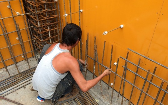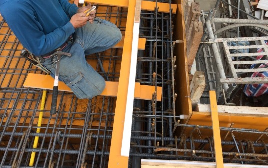 鋼筋綁紮過程中,提醒師傅,勿將鋼筋與模版面碰觸,造成模板損壞。