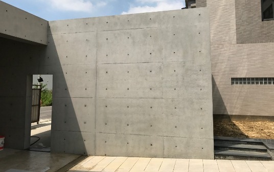 在清水模建築混凝土澆置前,不得用水濕潤,怕混凝土碰水,會有水傷,導致產生顏色不均現象,因此,施工完畢後,傾利用時間將灌漿範圍清潔乾淨,等過幾天後,再行壓送工程。